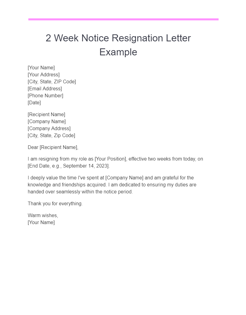 weeks notice resignation letter sample word editable