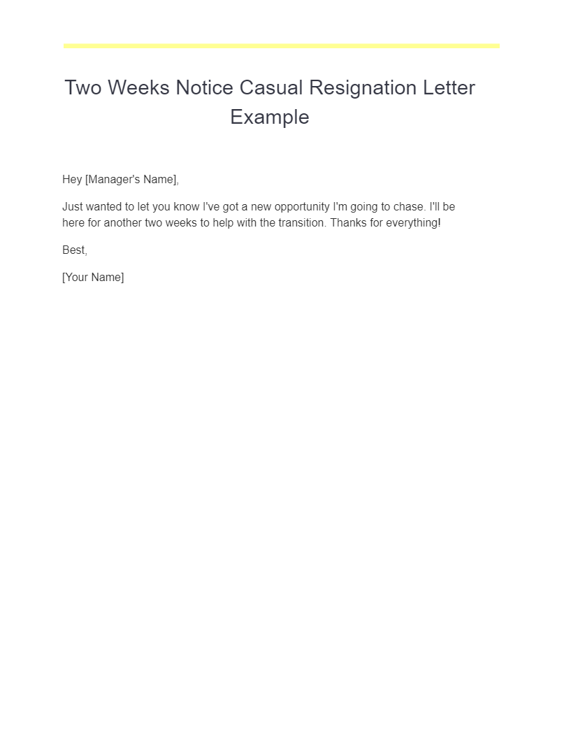 weeks notice resignation letter template sample