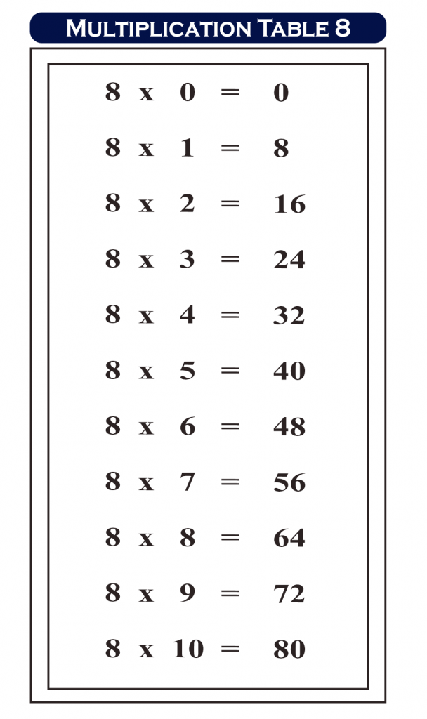 Berbagai Contoh 8 Times Table Chart