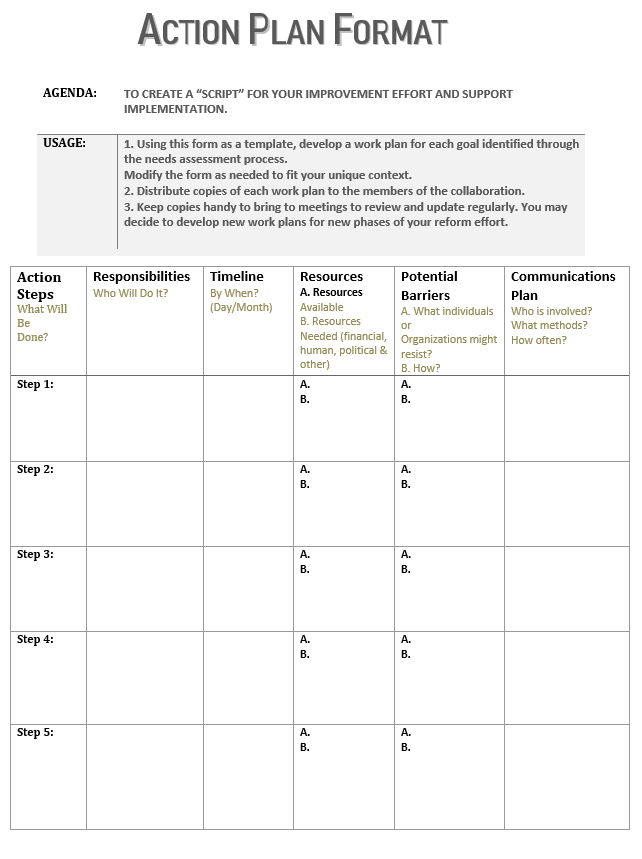 Berbagai Contoh Action Plan Table Template