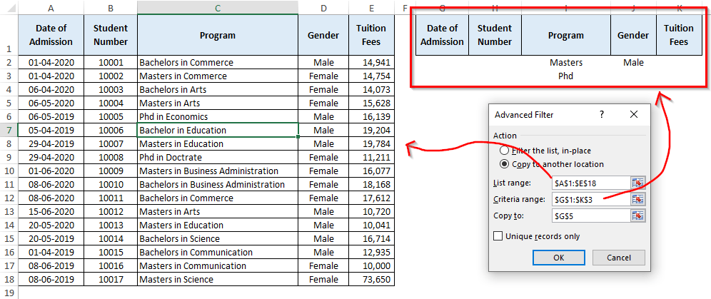 Berbagai Contoh Advanced Filter