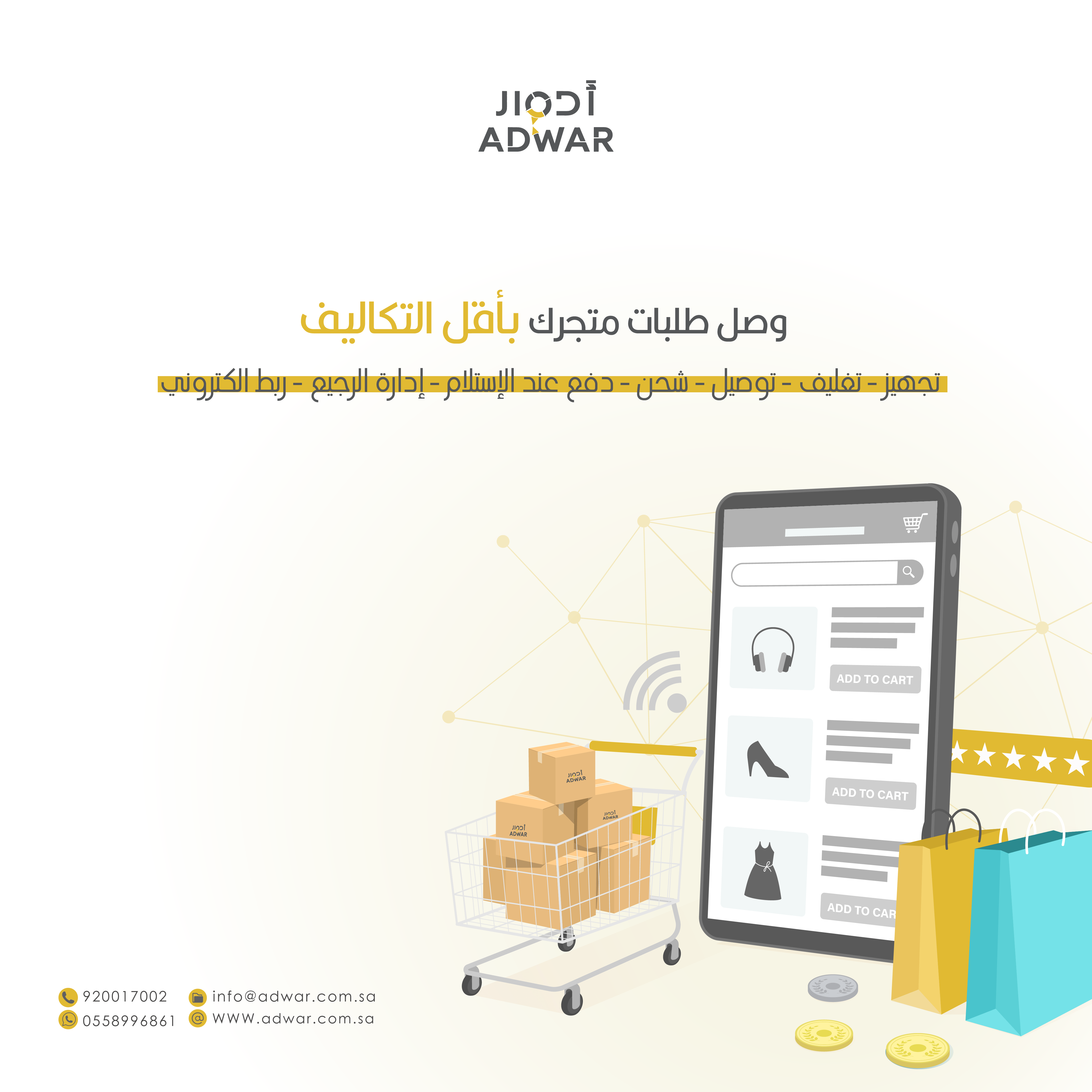 Kami mengirim paket Adwar melalui berbagai ekspedisi, misalnya JNE, JNT, POS, dll. Kami juga menerima pembayaran via BCA/Mandiri/dll. Pengiriman biasanya tidak sampai seminggu sudah sampai dan kami sertakan pula nomor resi yang bisa digunakan untuk tracking barang secara online.