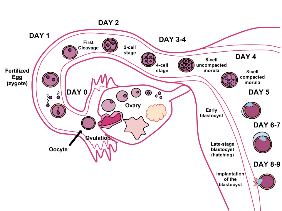 stages development fertilization implantation diagram