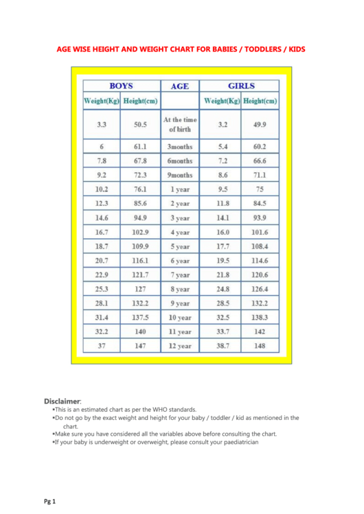 age wise height weight chart babiestoddlerskids printable