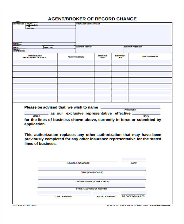 fillable letter authoritychange agent form fax email