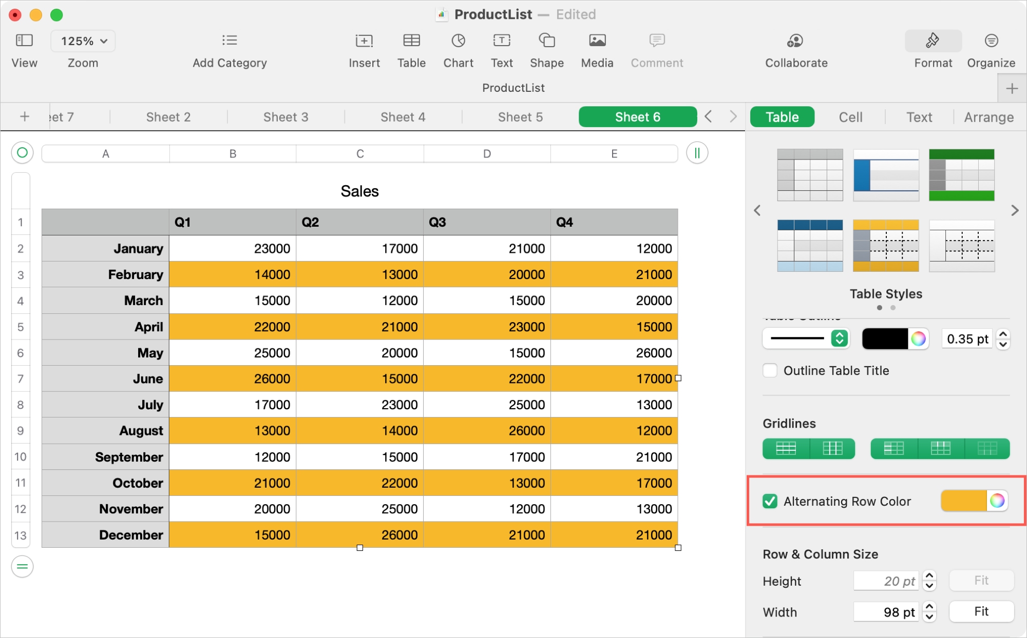 Berbagai Contoh Alternating Colors