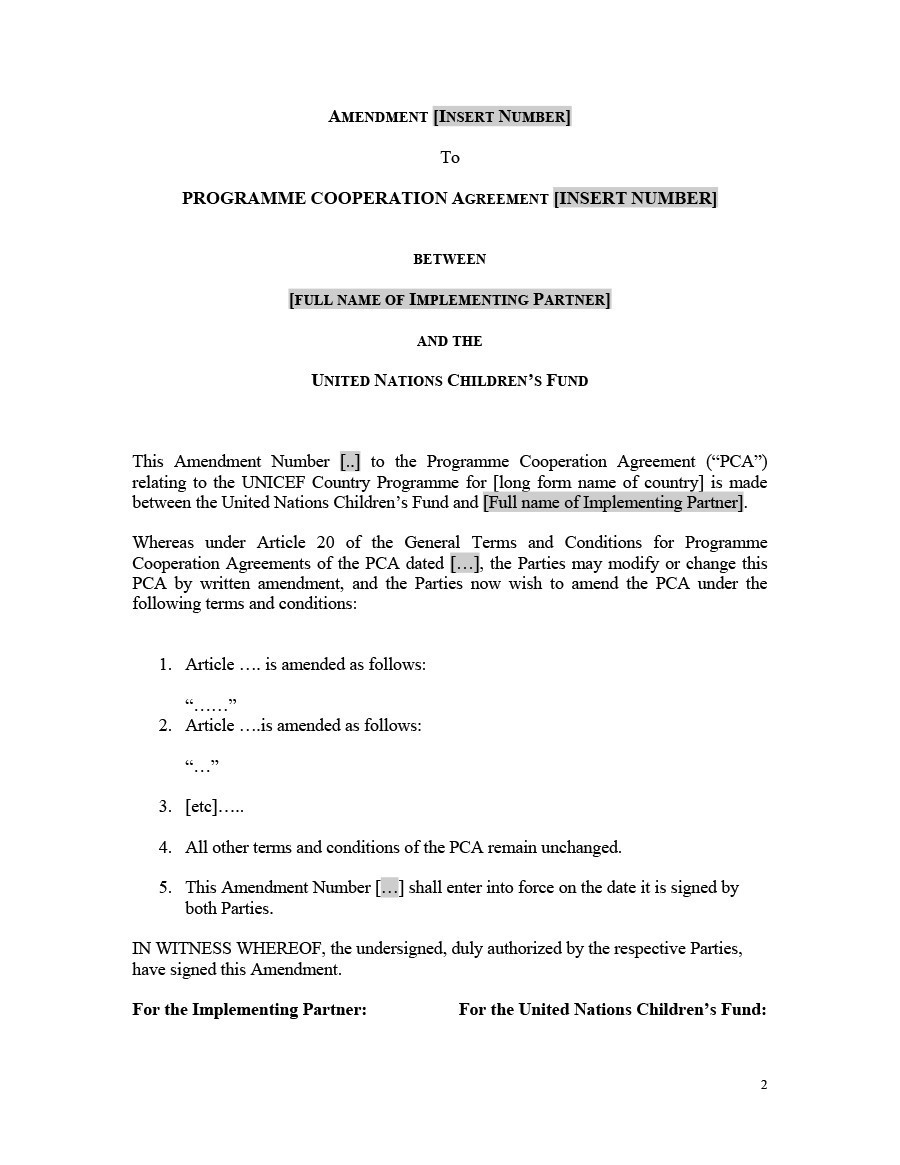 letter template contract amendment agreement samples