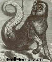 eerie enigmatic image demon amon wolf snake tail