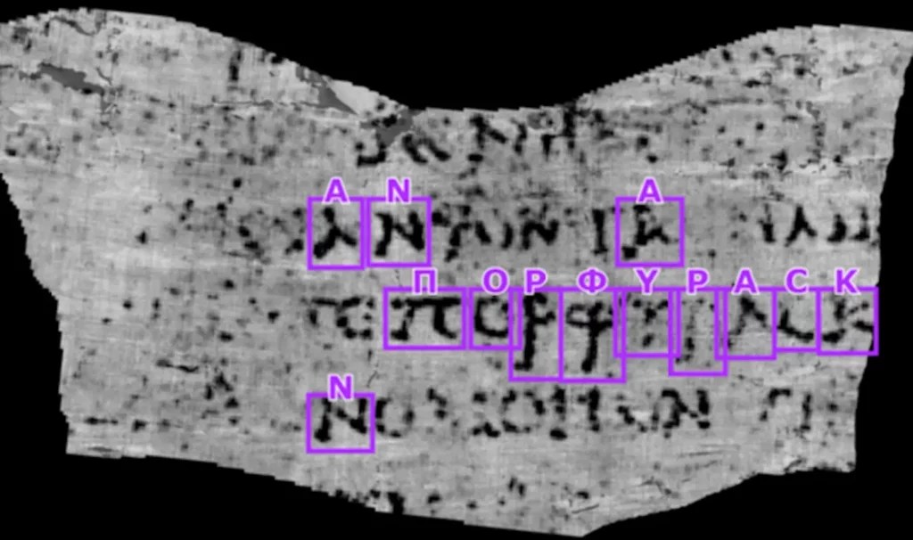 student ai decipher word ancient scroll herculaneum