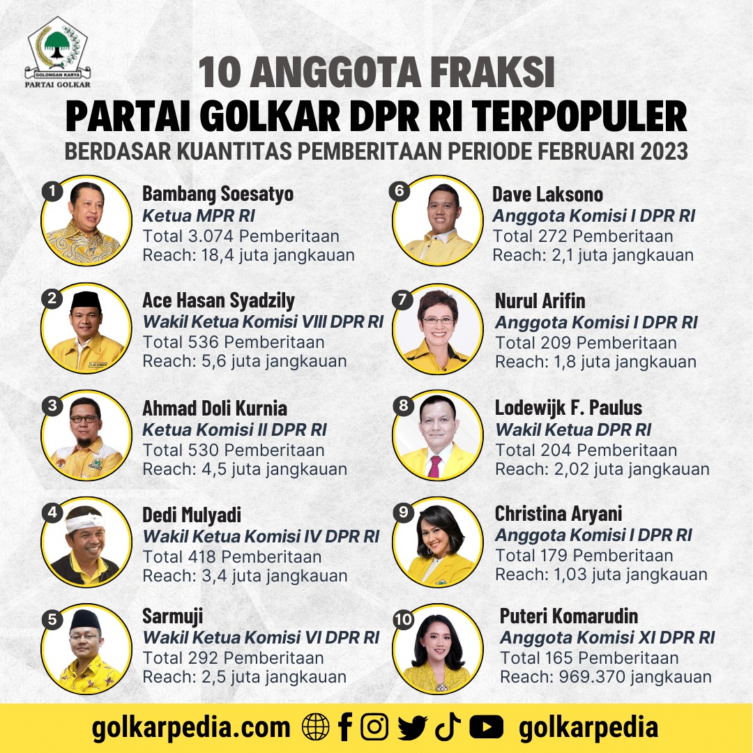 anggota fraksi partai golkar dpr ri terpopuler periode februari