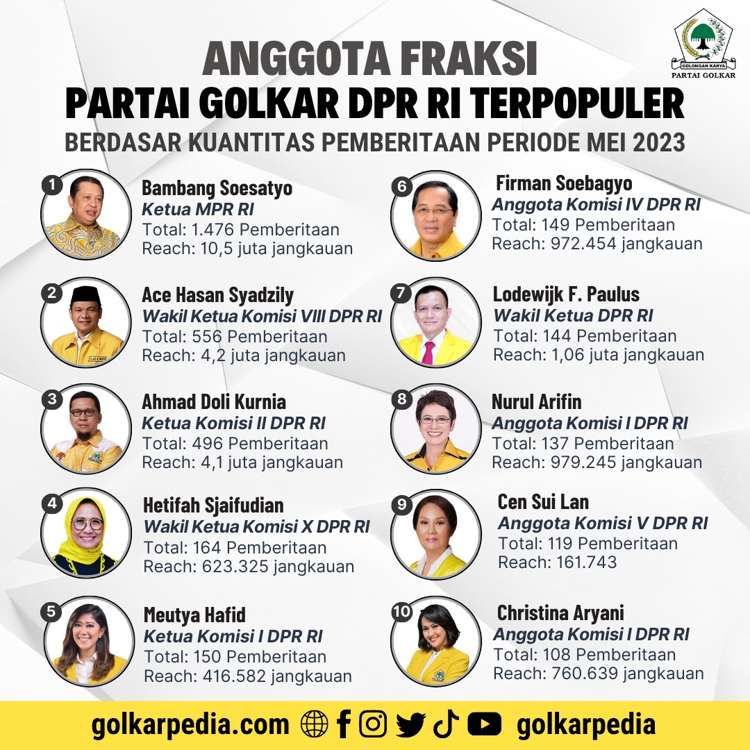 inilah daftar anggota fraksi partai golkar dpr ri terpopuler bulan