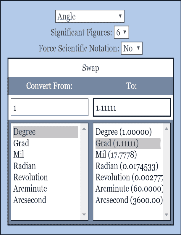 Berbagai Contoh Angle Conversion
