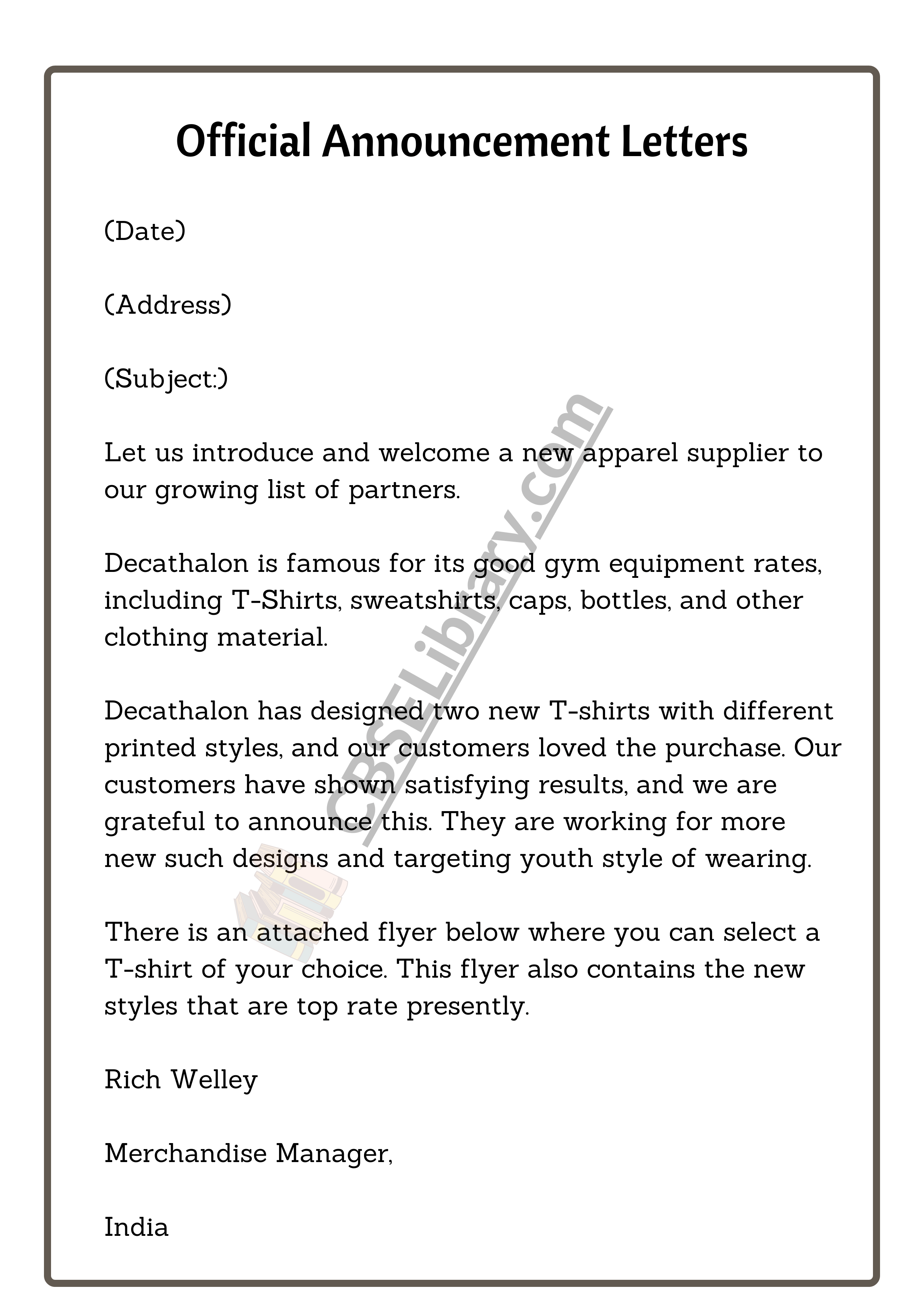 Jika kamu sedang mencari Announcement Example, maka anda berada di halaman yang tepat. Kami menyediakan aneka Announcement Example yang bisa anda pesan online. Silakan hubungi kami via +6282245078486, jangan lupa sertakan juka gambar yang diinginkan.