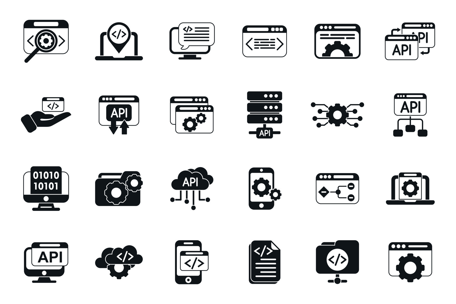 api icons set simple vector code develop vector art vecteezy