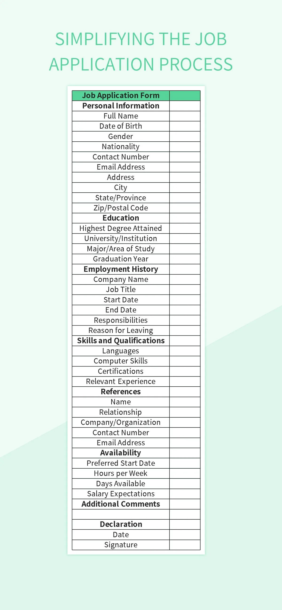 application template basic job applications template printable