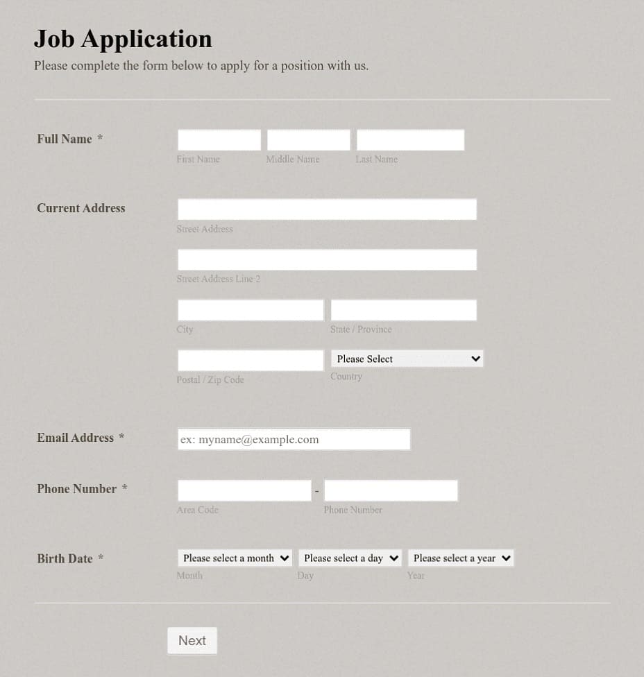 printable application form printable application