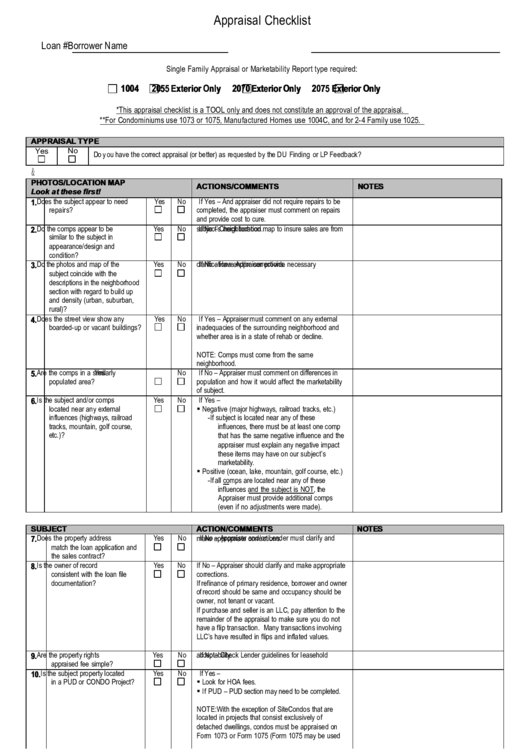 Berbagai Contoh Appraisal Checklist