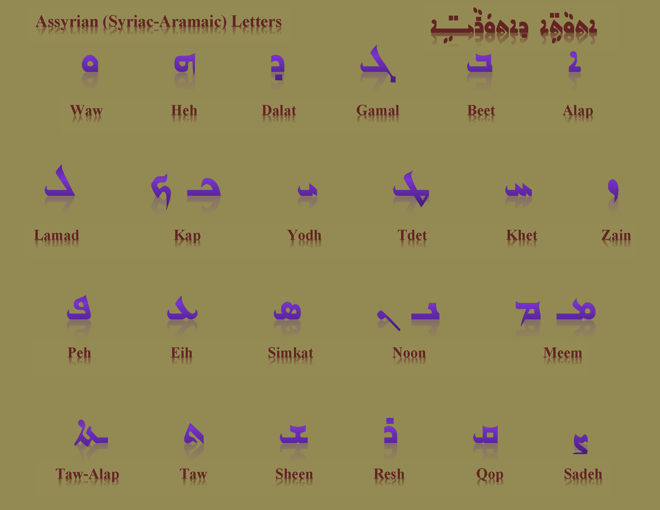 Berikut kami sertakan berbagai contoh gambar untuk Aramaic Language, silakan save gambar di bawah dengan klik tombol pesan, anda akan kami arahkan pemesanan via WA ke +6282245078486.