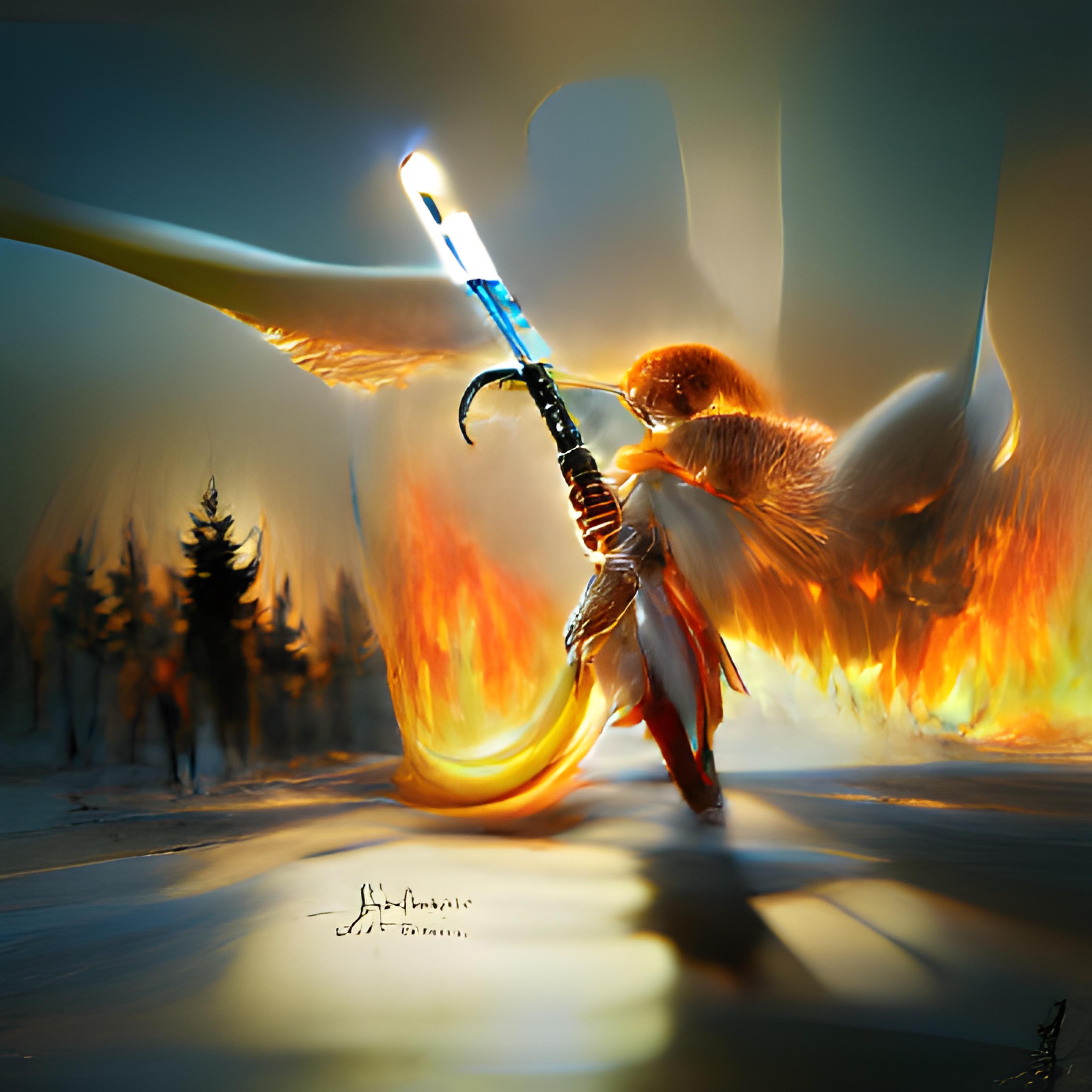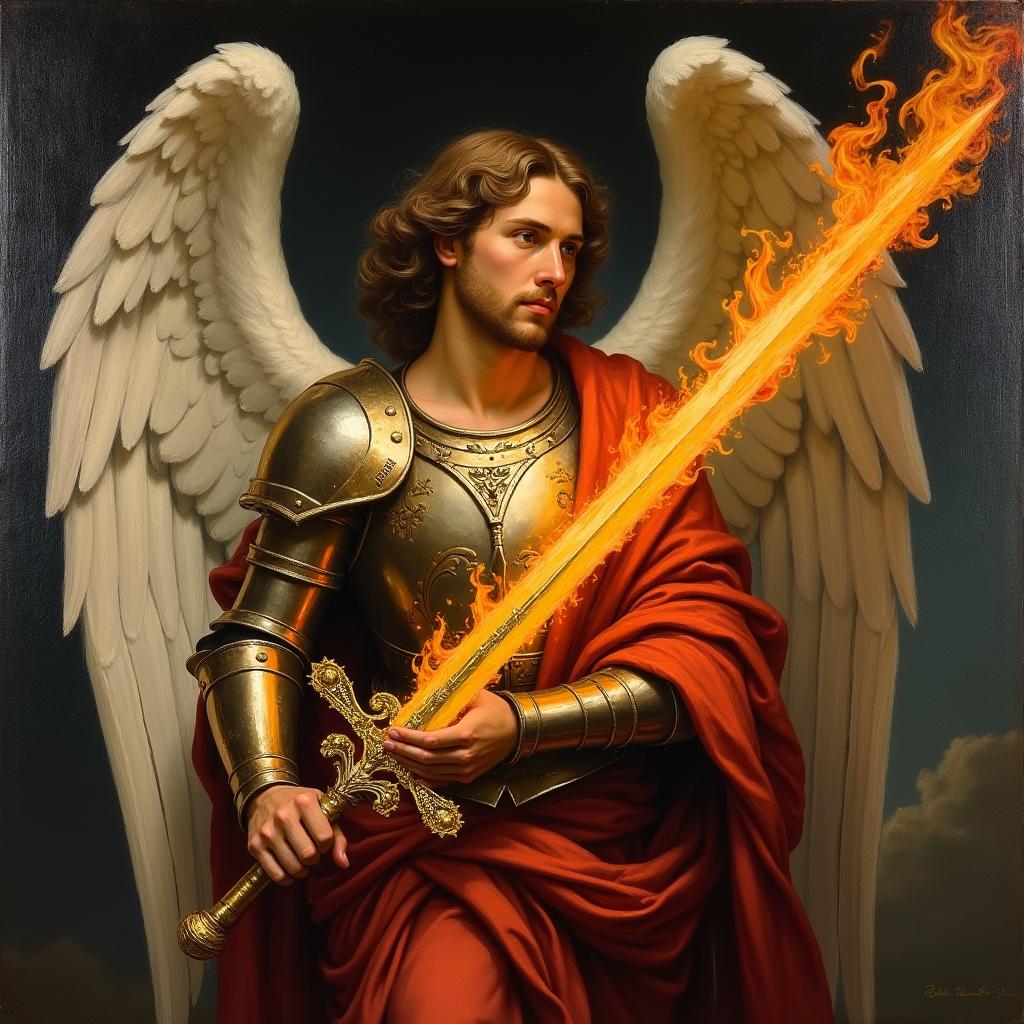 flying archangel michael flaming sword clashing swords