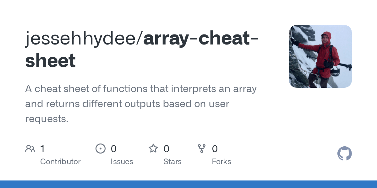 github jessehhydeearray cheat sheet cheat sheet functions