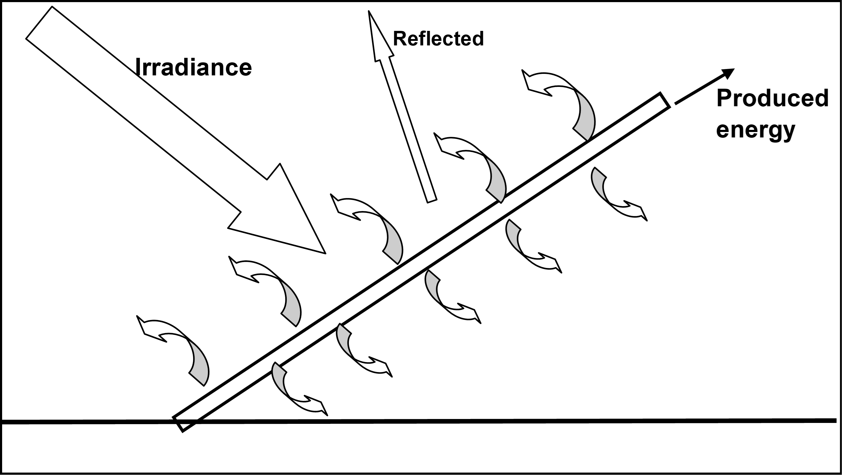 solar array heat energy balances direct sun incidence left