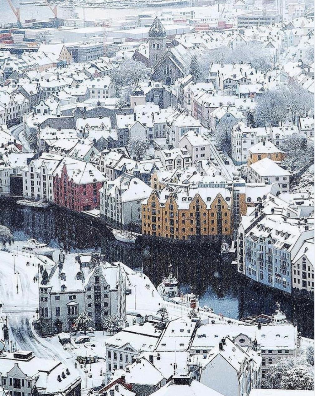 winter view alesund city snow norway stock image image