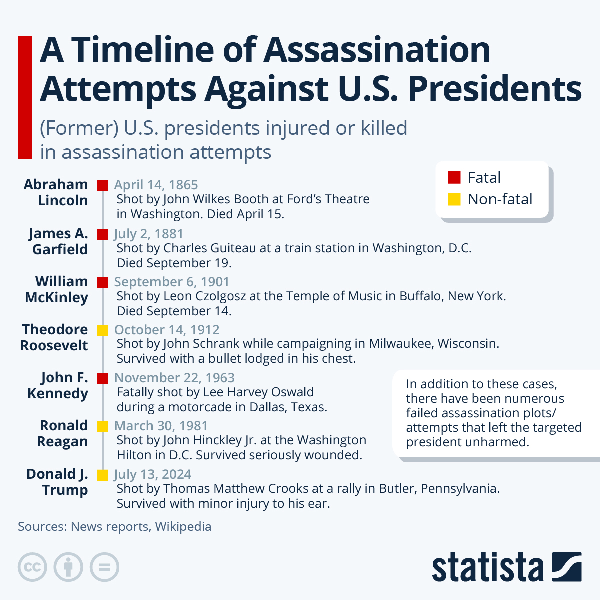 chart timeline assassination attempts presidents