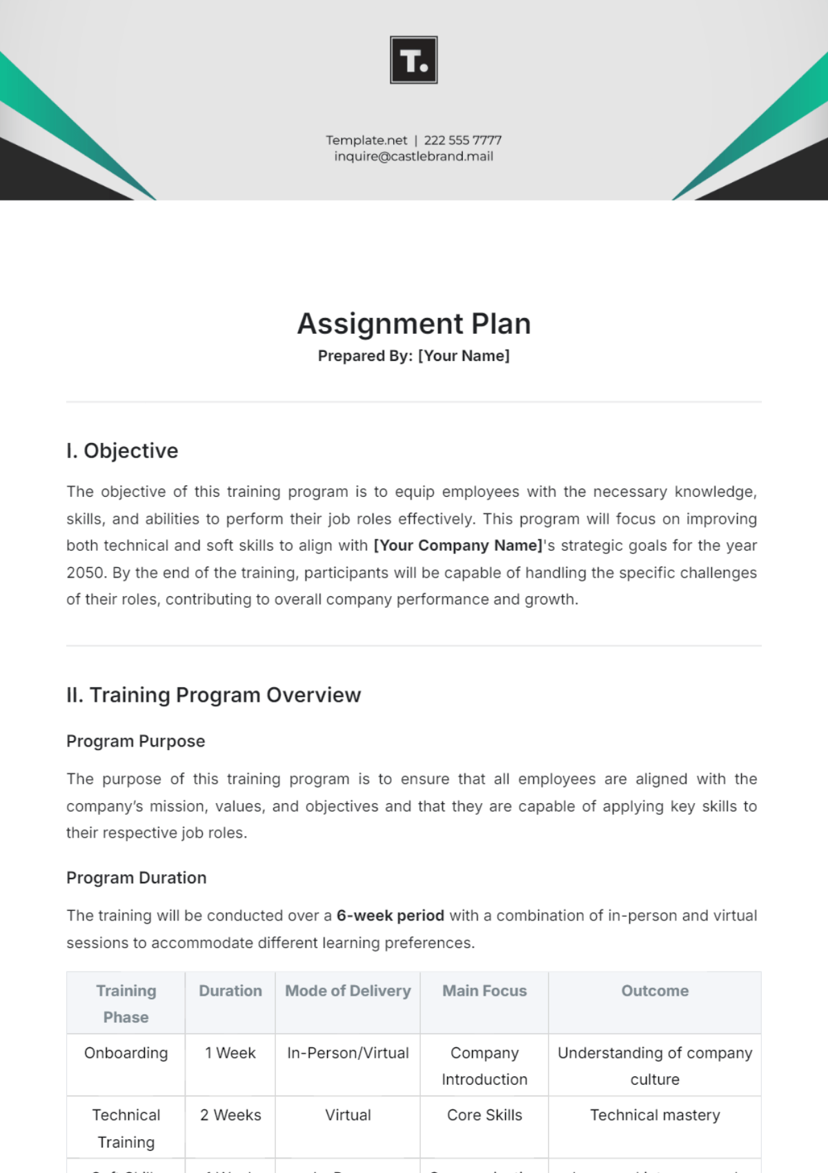Berbagai Contoh Assignment Plan