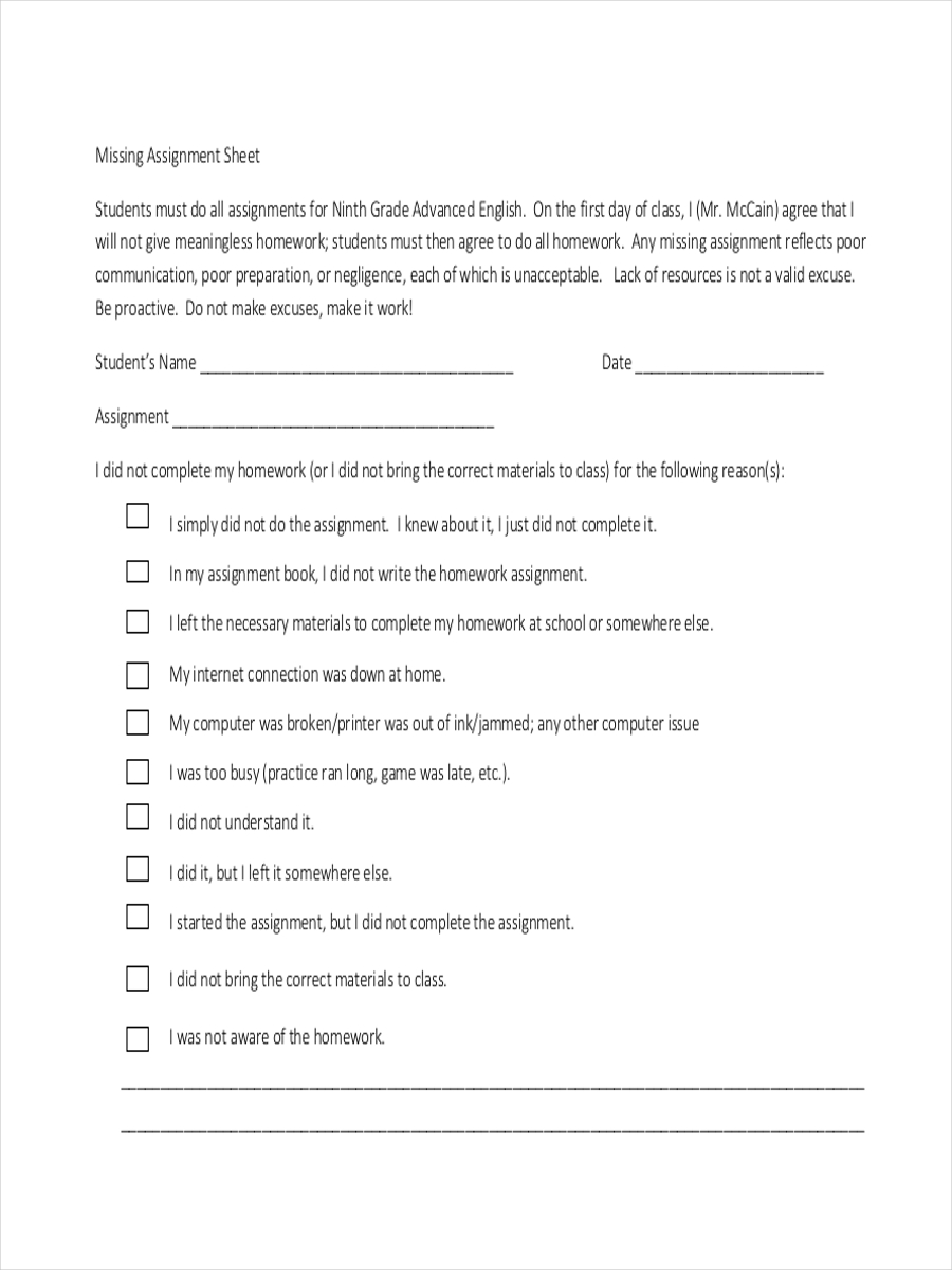 Berbagai Contoh Assignment Sheet Example