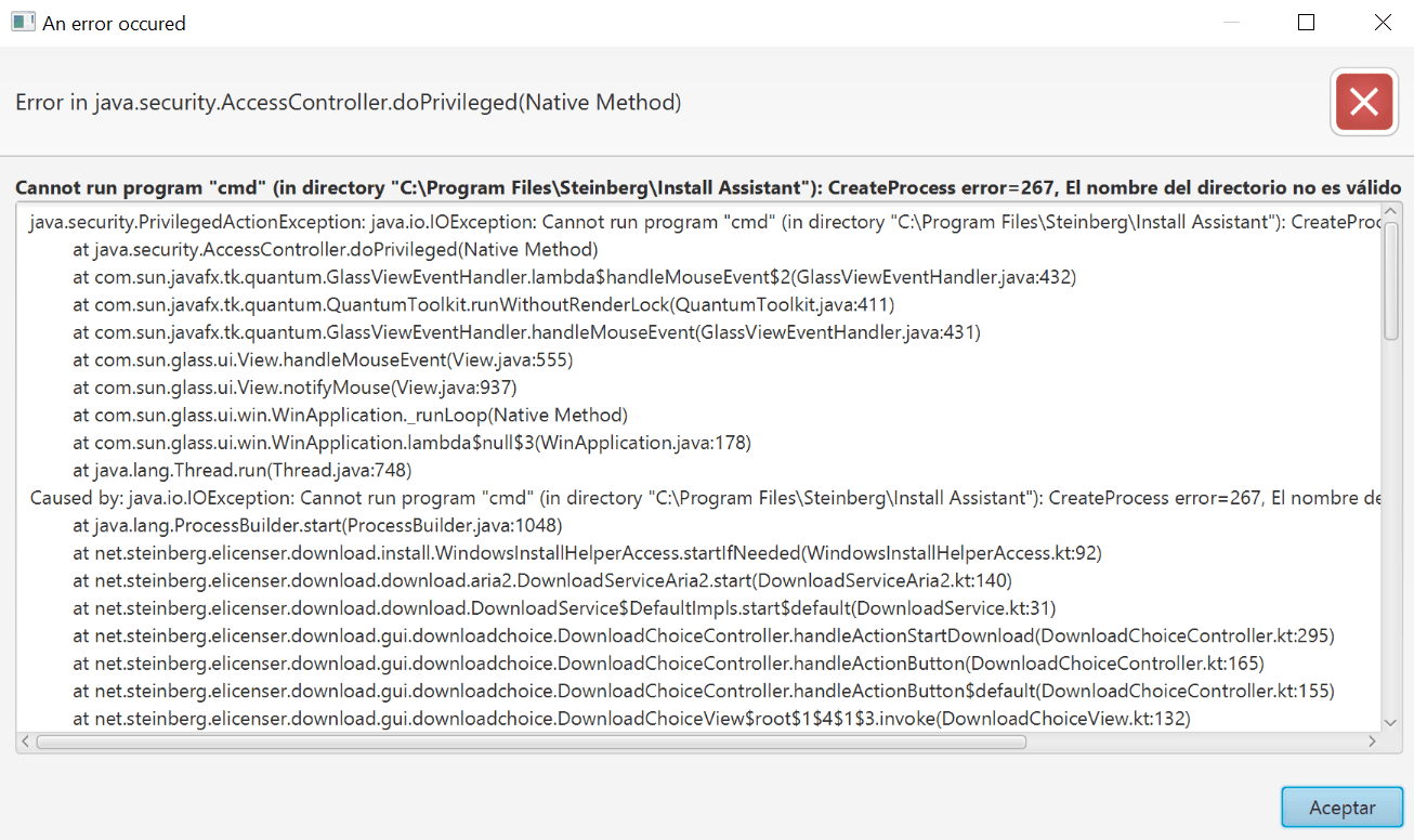 steinberg assistant error occurs clicking install