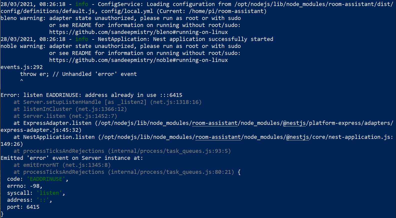 wierd error preventing restarting home assistant