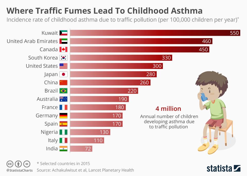 chart traffic fumes lead childhood asthma statista