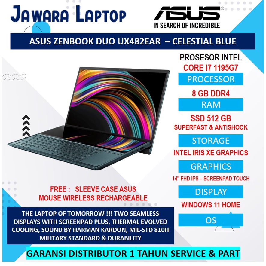 jual asus zenbook duo uxear ssd iris xe fhd ips dual
