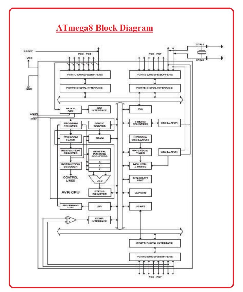 Tidak hanya Atmega8, anda juga bisa melihat gambar lain seperti Arduino Pinout, AC Stabilizer, Block Diagram, Microcontroller Board, External RAM, USB Serial Port, LED Blink Diagram, AC Detect Circuit, Circuit Diagram, and PCB Design.