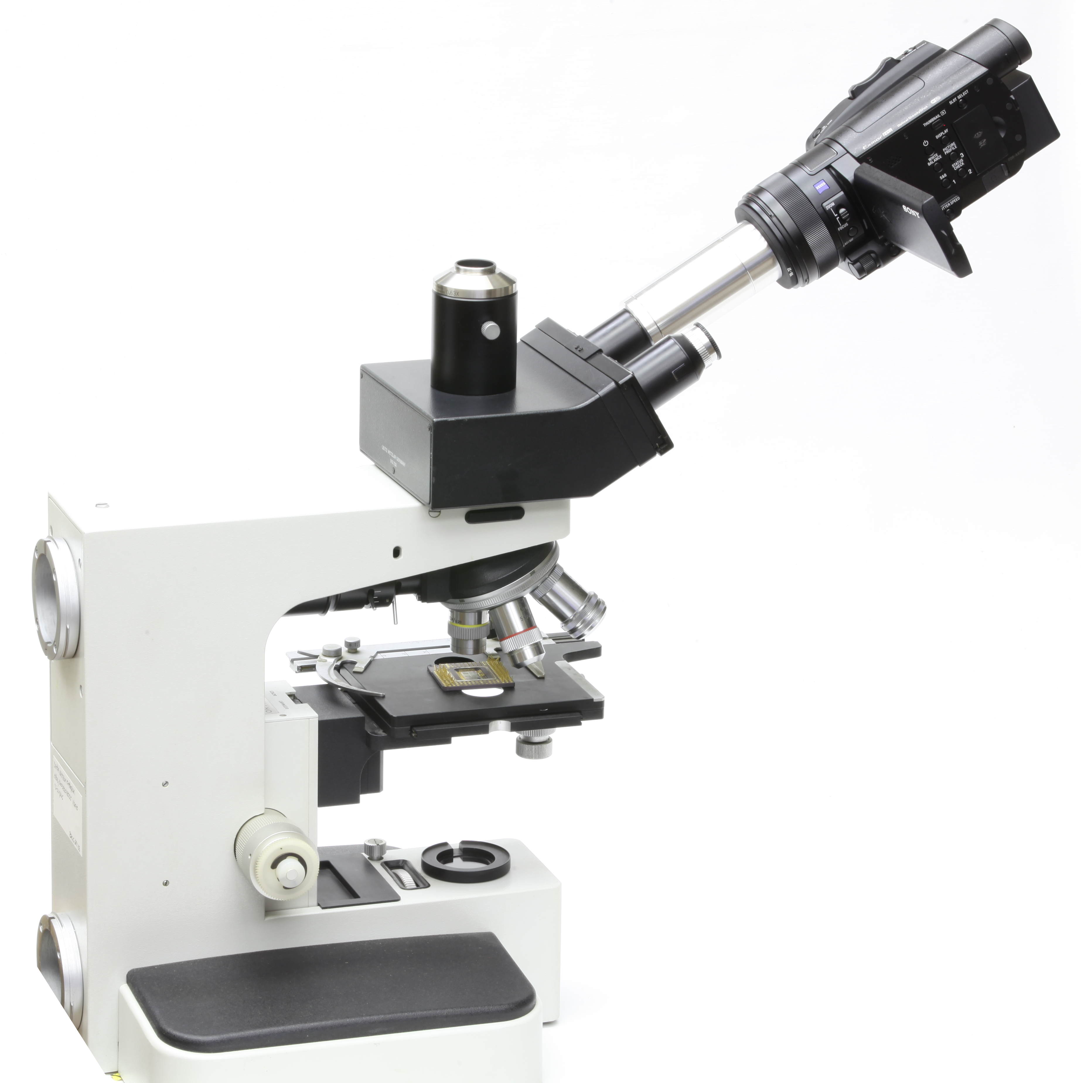 installing operating large camera lens microscope eyetube