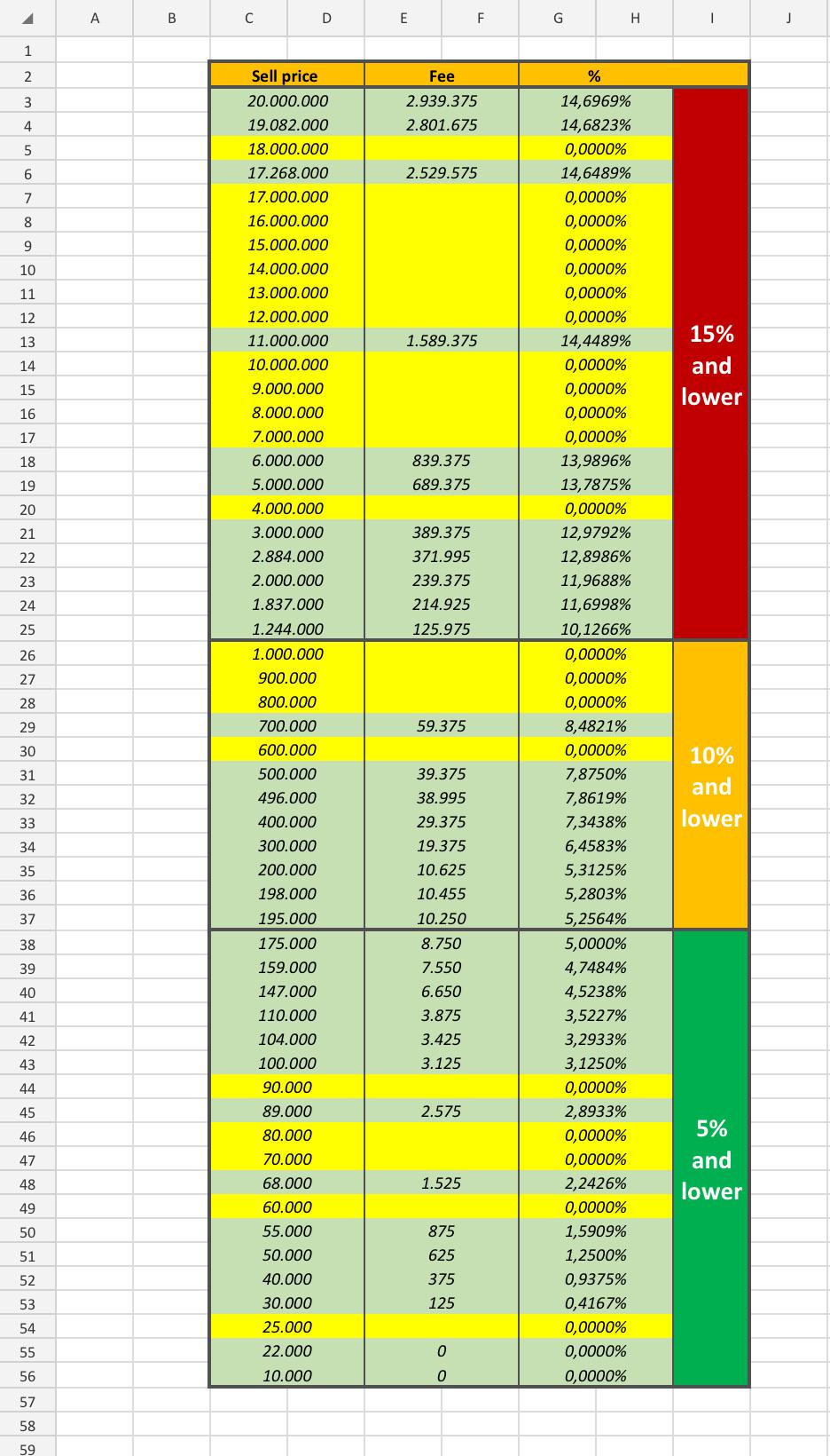 Berbagai Contoh Auction Fee Chart
