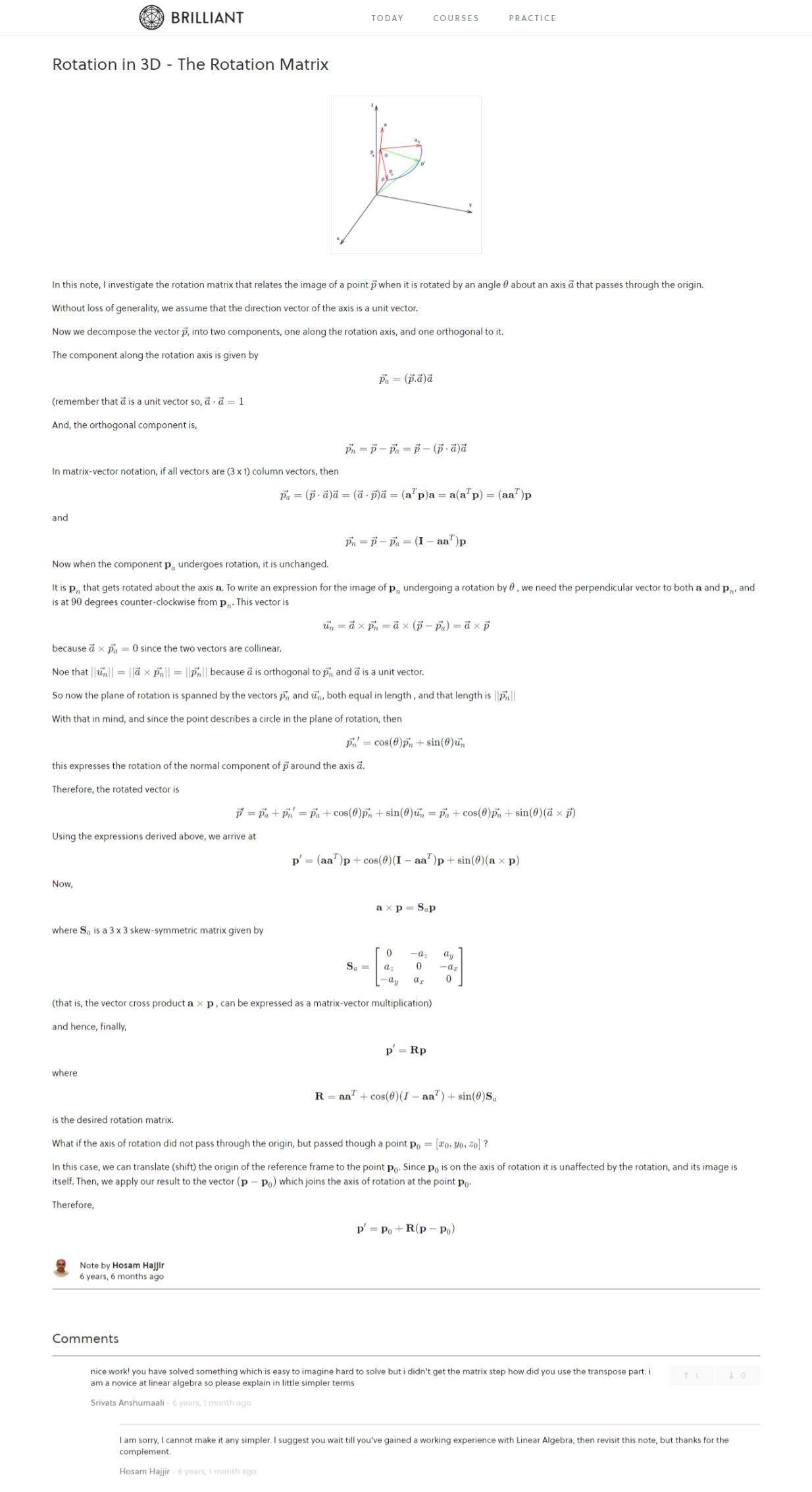 linear algebra rotation arbitrary axis math primer