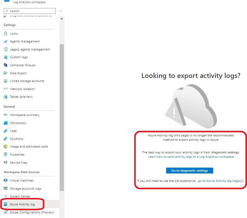 azure activity log export journey log analytics legacy log