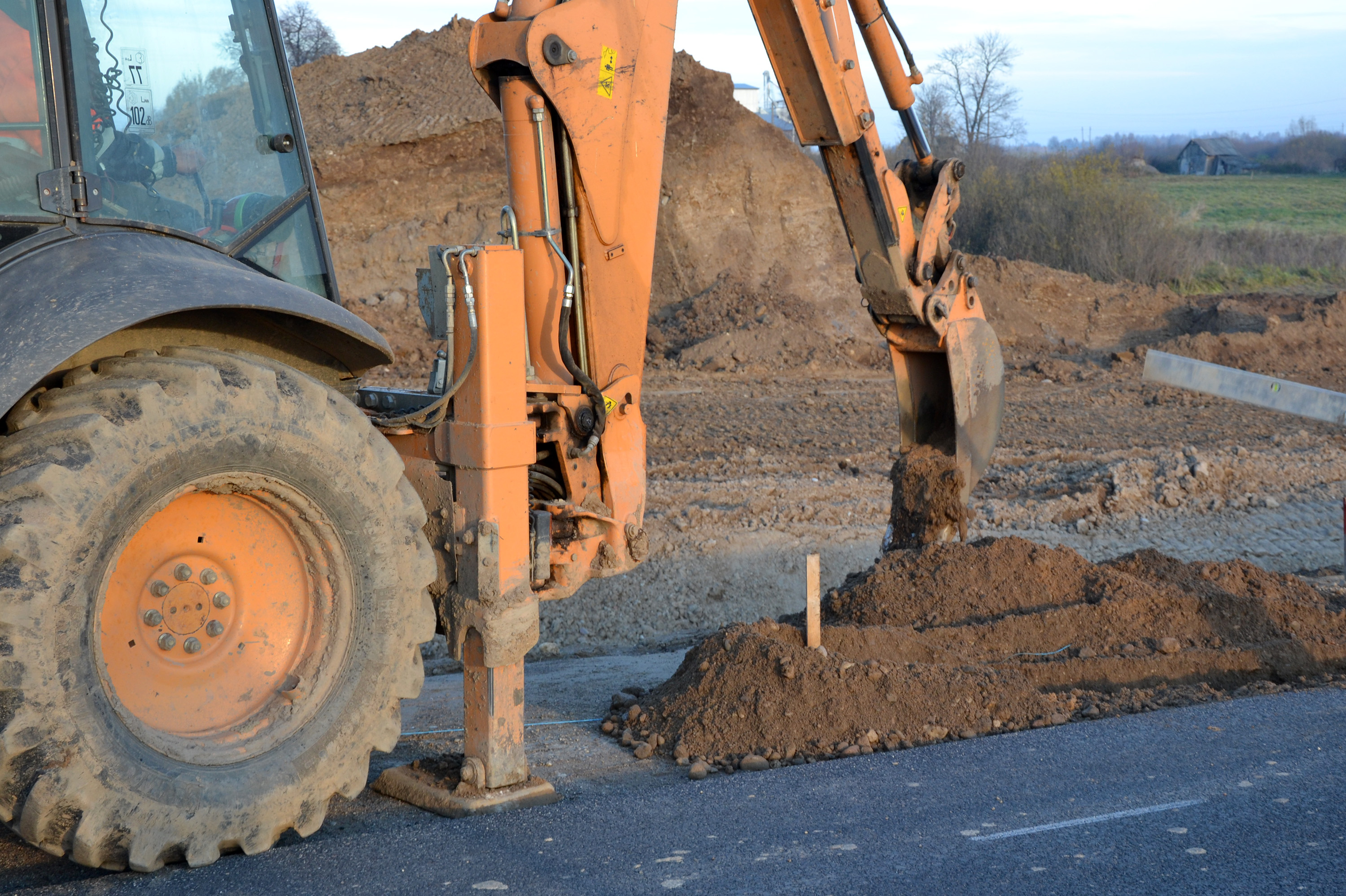 excavator backhoe construction site front setting stock photo