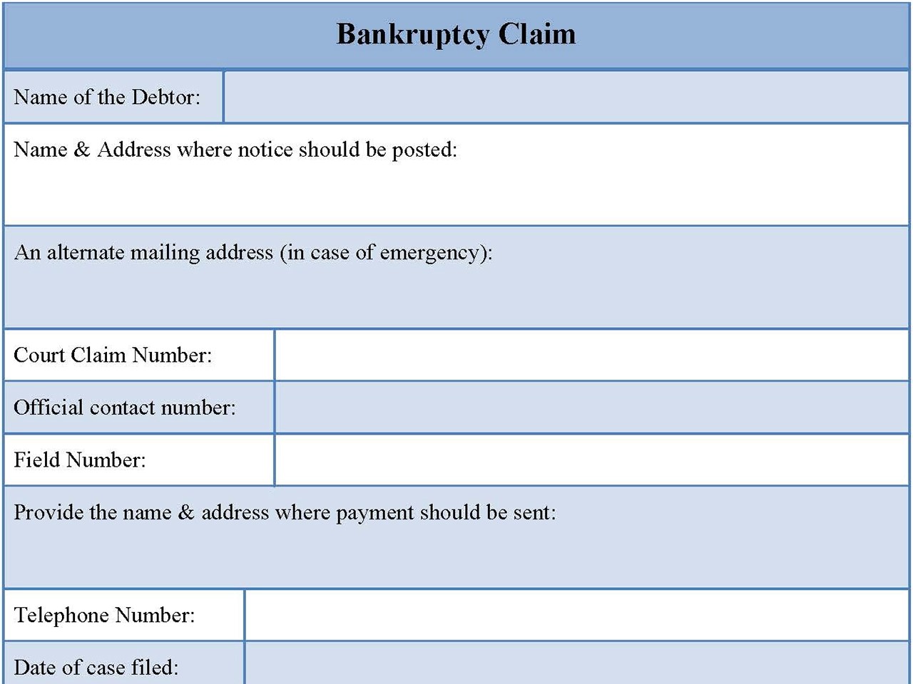 bankruptcy claim form fillable printable forms