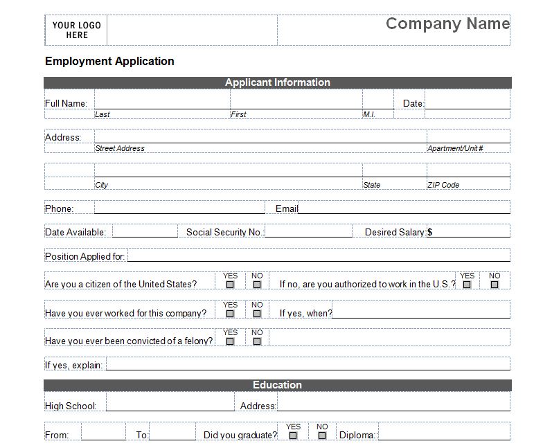 basic job application printable printable application