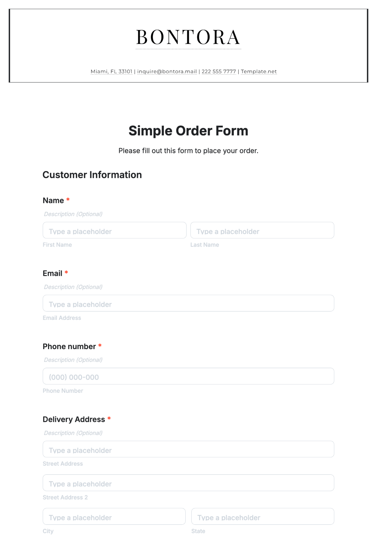 Berbagai Contoh Basic Sample Order Forms