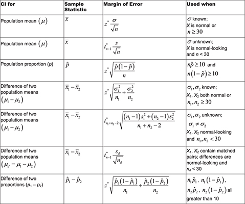 bstats formulas statistics formula sheet exam formula list