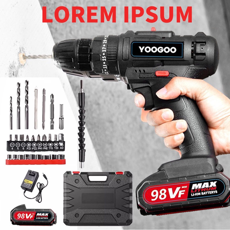 bor baterai cas komplit vf bor tangan listrik mesin bor baterai bolak