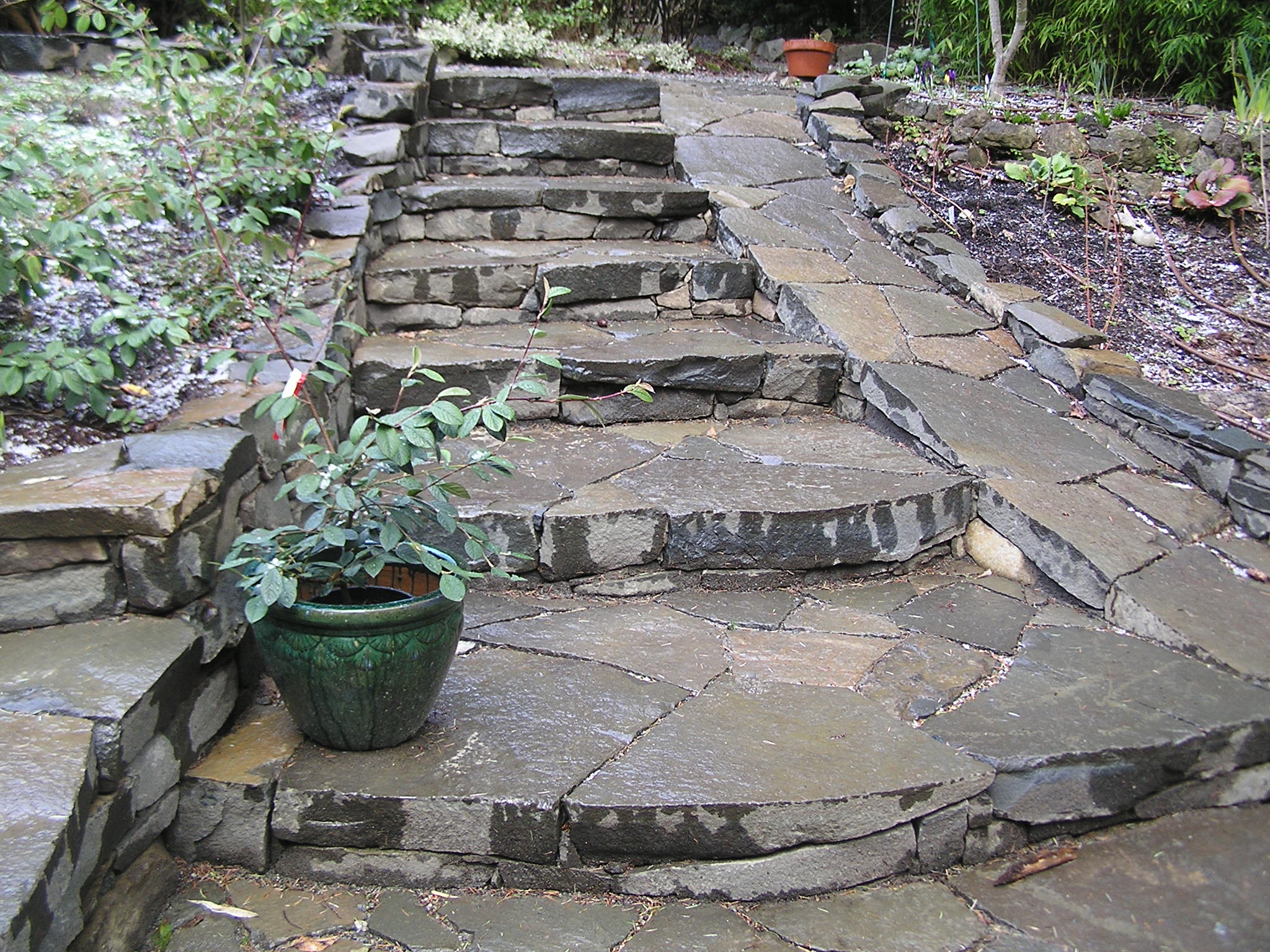 sprawling stone staircase bending steep stock photo
