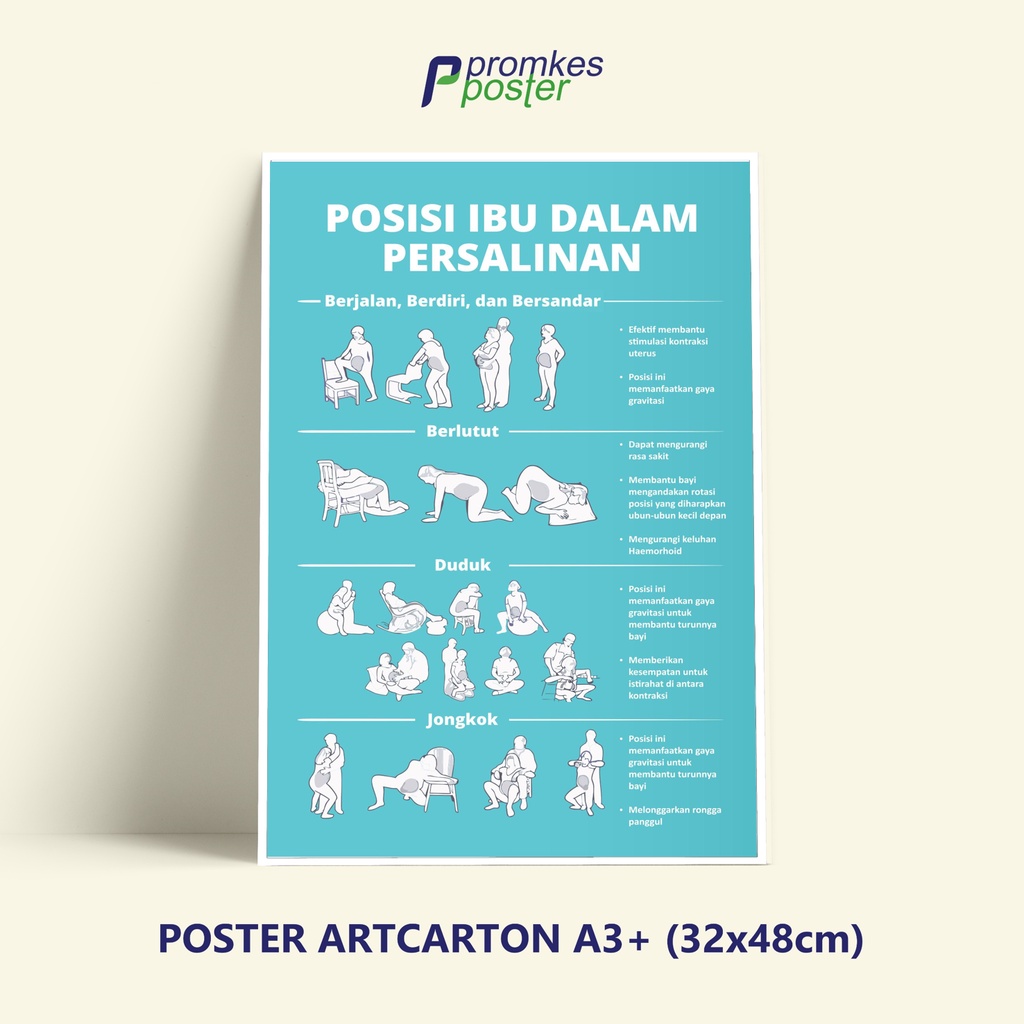jual poster kesehatan posisi ibu bersalin melahirkan shopee