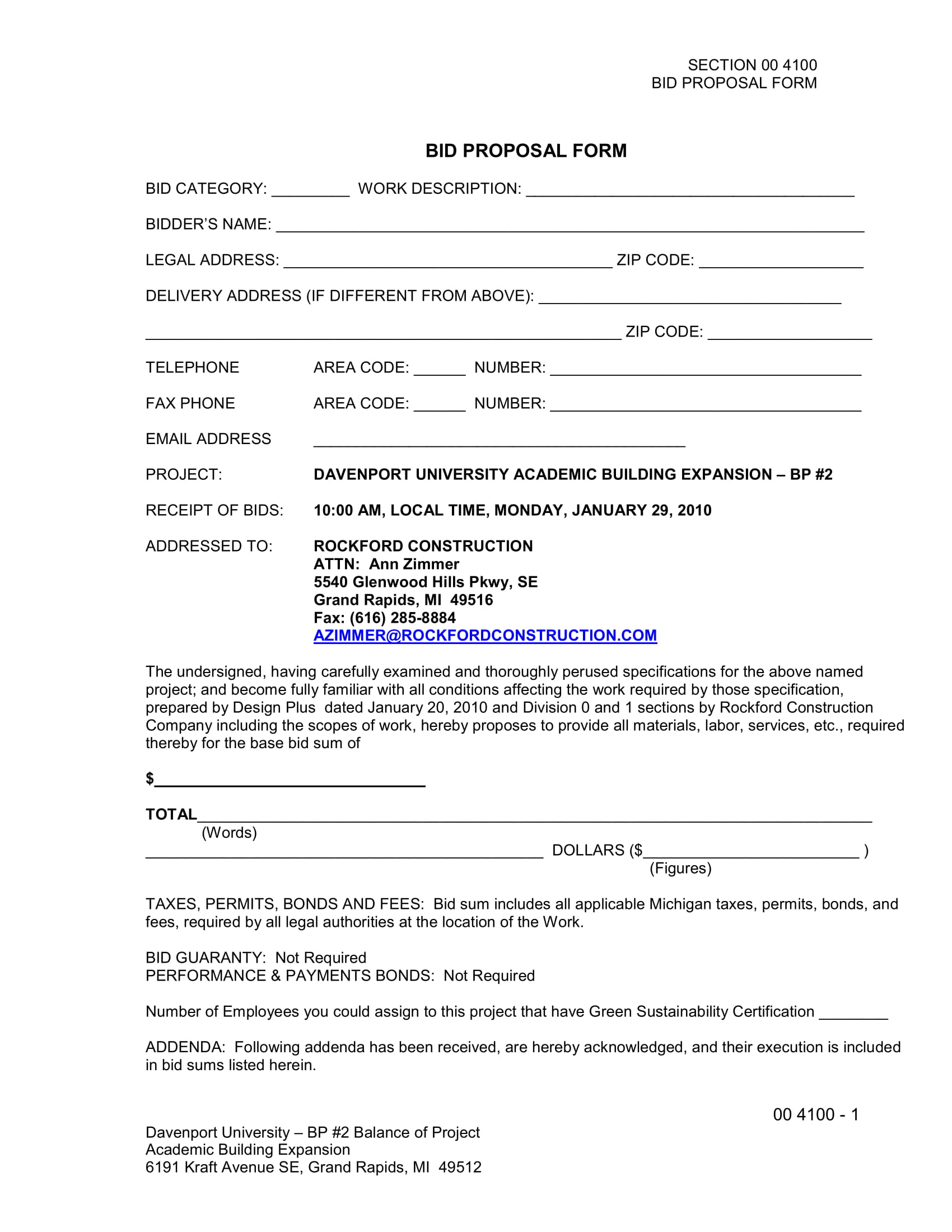 Berbagai Contoh Bid Form