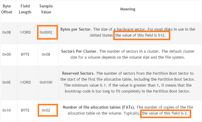 Berbagai Contoh Bios Parameter Block