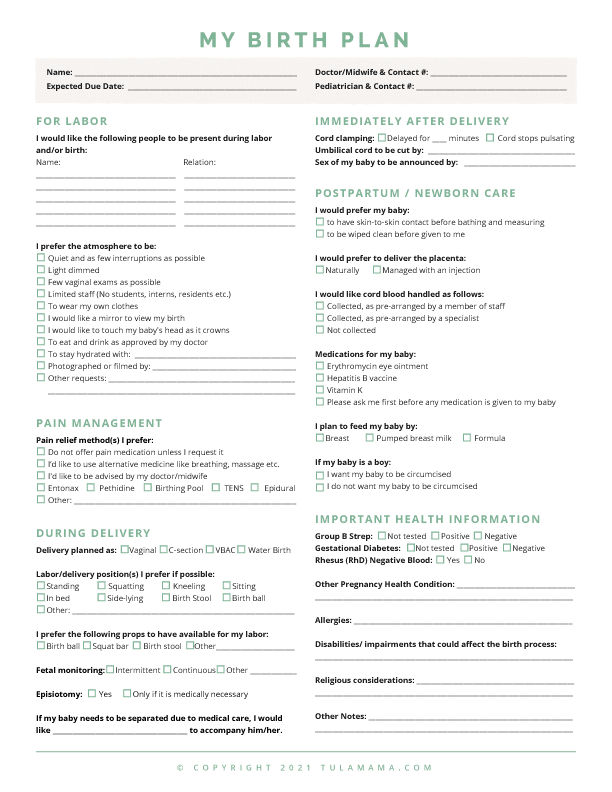 Berbagai Contoh Birth Plan Template