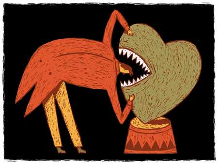 cat biting heart illustration stock photo alamy